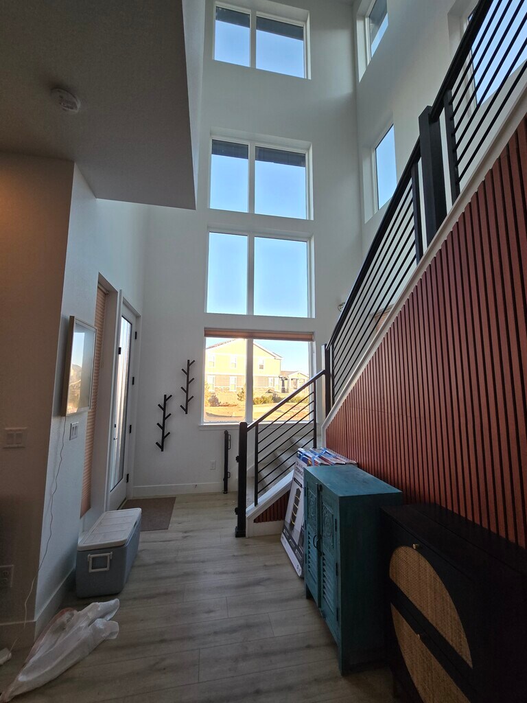 Available 12/16/2025 is this new home, built in 2023, owner occupied, never been rented, beautiful and spacious three story house plus a finished basement. There's 4 bedrooms, 4.5 bathrooms and 3100 square feet of finished living space. As you enter you'll find an open and airy floor plan with lots of windows providing tons of natural light throughout the kitchen with new Stainless Steel appliances and Quartz countertops, pantry, breakfast room, half bath, door to the two car attached garage and a covered outside sitting room. The second floor has a family room, two bedrooms with attached bathroom, laundry room with hookups (washer and dryer can be provided) and the Master Suite with walk in closet, private deck with mountain views, free standing tub and walk in shower. The third floor has a second full kitchen, enclosed office with private balcony, family room or bedroom, full bathroom and access to a large deck with mountain views. The finished lower level has a large play room for the children or second living room, bathroom with walk in shower, storage closet, furnace room plus additional a den. Features include luxury vinyl plank flooring in the main living areas, expansive windows throughout the home, Smart thermostats and ADT security system, whole-house water treatment system and humidifier, ceiling fans and amazing mountain views. Great location with playgrounds, open common areas and quick access to E-470 and I-70, minutes to DIA and close to restaurants, shopping, entertainment, playgrounds, parks and more. The HOA fees are included in the rent which covers trash and recycling, front yard, street and sidewalk maintenance. Pets allowed with a $150 non refundable pet fee. Tenant pays all utilities. Monthly rent of $4850 for an 18 month lease to start on or prior to 1/1/2026. Monthly rent of $5100 for a lease that starts later than 1/1/2026 or less than 18 months.