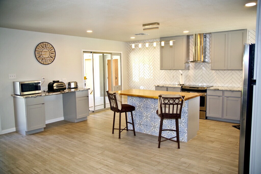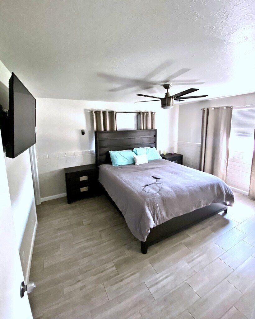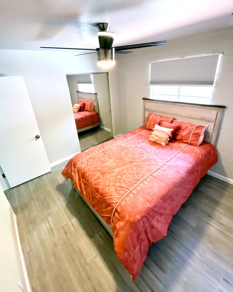 COMPLETAMENTE FURNISHED!!! contratos de arrendamiento de 3 meses. Apartments bellamente renovados de la moderna casa de campo. de 3 habitaciones, 2 baños, con ENORMES patio trasero. La casa está ubicado en una tranquila calle sin salida en el centro de Phoenix. Pisos cerámicos en toda la casa con amplios planos de planta abiertos plan.Beautiful encimeras de granito en la cocina, con duchas de azulejos en los baños. Wi-Fi incluido con 2 televisores inteligentes grandes (uno en la sala de estar, uno en el habitación) También tiene puerta para perros para perros grandes para los viajeros que trabaja de turno largo y tener mascotas!