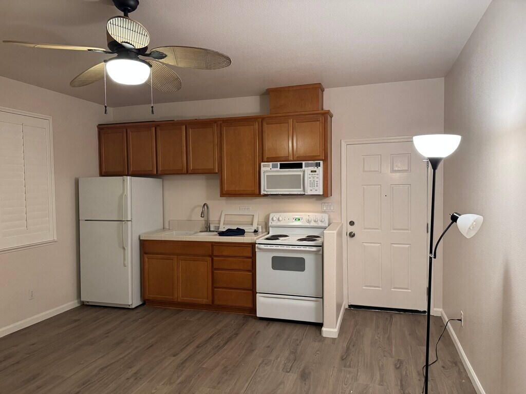 Utilities included in rent: Water, Sewage, Electricity, Gas and internet Studio in law unit in Wicklund village, Mountain House, close to elementary school, walkable distance (3-5 mins) to Wicklund park and Wicklund market. This is an attached casita in 2nd floor with street parking only. New LVM flooring. Whole unit is newly painted. This unit has its own address, and separate mail box It has full bath, walk- in closet, kitchen with cooktop range, microwave and refrigerator. Fan and Air-conditioning/heating in room. 3 Windows with enough natural light and cross ventilation. Parking is off street, plenty of space. No smoking; No pets, No home business.