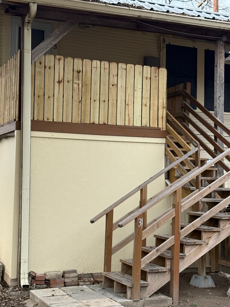 **Utility bills included in rent** (Electricity, Water/Sewer and Garbage). Parking is on premises inside fenced area with driveway gate. Shared Laundry facility. VIA bus stops within 400 feet. Quiet area. 6 or 12 month lease. Unit is located in rear behind main house. It is up stairs on second floor of rear unit and is the only upstairs unit.