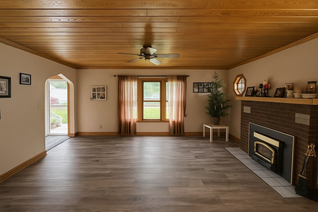 This spacious 4-bedroom, 2.5-bathroom home offers 2,000 square feet of bright, functional living space. The main level features a living room with fireplace and beautiful tongue & groove ceilings, and an eat-in kitchen equipped with stainless steel appliances, a microwave, and a pantry. The four bedrooms include ample storage, with the master bedroom featuring an en-suite bathroom. Additional living areas include a partially finished basement with large family room, providing versatile space for relaxation or entertainment. The property includes essential amenities such as high-speed internet access, cable readiness, and a laundry room with washer and dryer hookups. The exterior offers a privacy fenced yard with children's playset and a patio, ideal for outdoor activities. Just completed bathroom remodel and new flooring installation throughout. This rental is available for $1,500 per month.