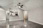 Beautifully updated single-story home in the desirable Apple Creek community! This move-in-ready gem offers the perfect blend of comfort and convenience-just minutes from major highways, the Medical Center, USAA, UTSA, and premier shopping and dining. Inside, you'll find stunning stained concrete floors, vaulted ceilings, and abundant natural light flowing throughout the open layout. The spacious living room features a charming fireplace, while the fabulous kitchen at the heart of the home boasts elegant granite countertops, black appliances, and a convenient breakfast bar. The private master suite includes a walk-in closet and full en-suite bath, offering a relaxing retreat. Outside, enjoy a patio slab perfect for entertaining, a storage shed, mature trees, and a full privacy fence. Call/text/email Madison Peterson Leasing Specialist Exquisite Property Services