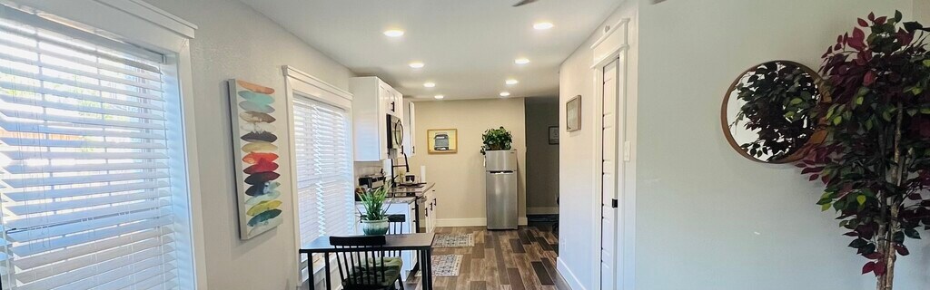 1 bedroom, 1 bath cottage nestled in the heart of the Bishop Arts District! This modern, light-filled space with an open living area is perfect for entertaining guests. Prepare your favorite meals in the beautiful kitchen, complete with modern white cabinets and stainless steel appliances. This home features dark wood-like floors and bright, neutral walls creating an inviting atmosphere. Unwind in the spa-like bathroom, featuring a glass-enclosed walk-in shower with built-in Bluetooth speakers to play your favorite music. Amenities: Spacious bedroom with plenty of natural light. In-unit washer and dryer for your convenience. Outdoor patio area. Tenant pays for all utilities unless otherwise agreed and assumes responsibility for maintenance and care of provided appliances, including the refrigerator, washer, dryer, and stove. Property allows a maximum of 2 vehicles. No pets. No smoking. Subletting is not permitted. Tenant must carry renter's insurance with $100,000 liability coverage. Additional terms include an $85 trip charge, keybox access authorized during the final 60 days of the lease, and a required professional move-out cleaning. Early termination is permitted with 30-day written notice and a fee equal to two months' rent. The tenant selection criteria may include factors such as criminal history, credit history, current income, and rental history. If you do not meet the selection criteria, or if you provide inaccurate or incomplete information, your application may be rejected and your application fee will not be refunded.