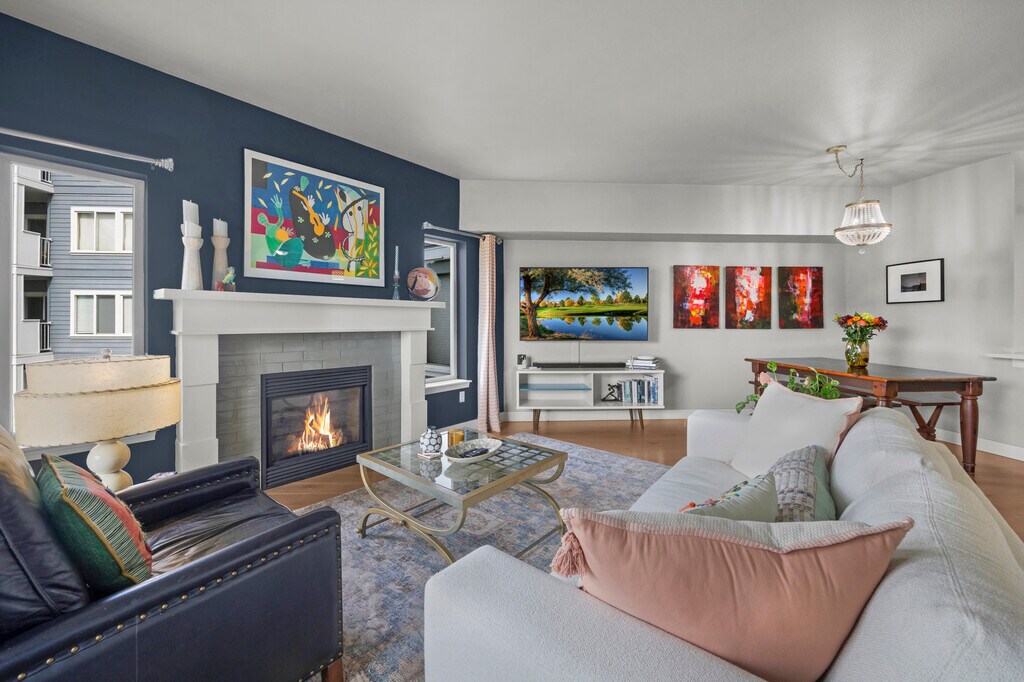 Lakeside Lifestyle: 1,300 Sq Ft 2BR + Office/Den Experience the Pacific Northwest lifestyle in this open concept, light-filled condo at the northern tip of Lake Washington. Situated in an secure 33-unit gated community, this 1,300 sq ft home offers designer finishes, and world-class outdoor access. Designer Kitchen: Featuring a Samsung Bespoke Refrigerator in a stunning Morning Blue and White Glass finish, paired with a stainless steel stove/oven and dishwasher. Open-Concept Living: The main living area features hardwood floors and a cozy fireplace—perfect for entertaining with a backdrop of Lake Washington views. The Master Suite: A spacious, carpeted sanctuary with a private ensuite bathroom and a walk-in closet. Flexible Layout: Includes a second carpeted bedroom and a dedicated office/den, offering the perfect quiet space for remote work. The Location: A Walker’s & Cyclist’s Paradise The Burke-Gilman Trail: Located directly across the street. Enjoy an easy, scenic stroll or ride to Kenmore’s vibrant "Brew Row," featuring local favorites like 192 Brewing, Stoup, Postdoc, and Copperworks Distilling, along with a variety of popular restaurants. Waterfront Access: Log Boom Park and Beach is just one block away for kayaking, paddleboarding, or sunset walks on the public pier. Prime Commute: Ideally positioned for quick, easy access to both Seattle and Bellevue. Offering two reserved parking spaces at NO extra charge. Located in a quiet, gated 33-unit complex in a secure, gated underground garage.