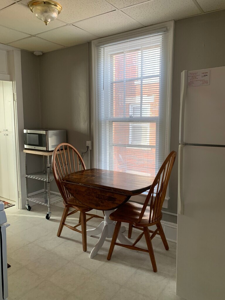 Clean quiet furnished apartment. Roku tv with internet, dishes and utensil's, bedding, utilities included. On or off street parking. Quiet building with long term tenants. No smoking and no pets.