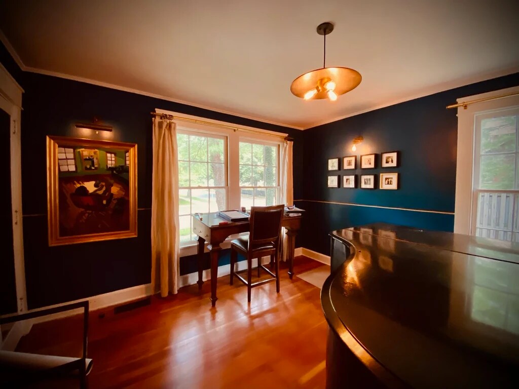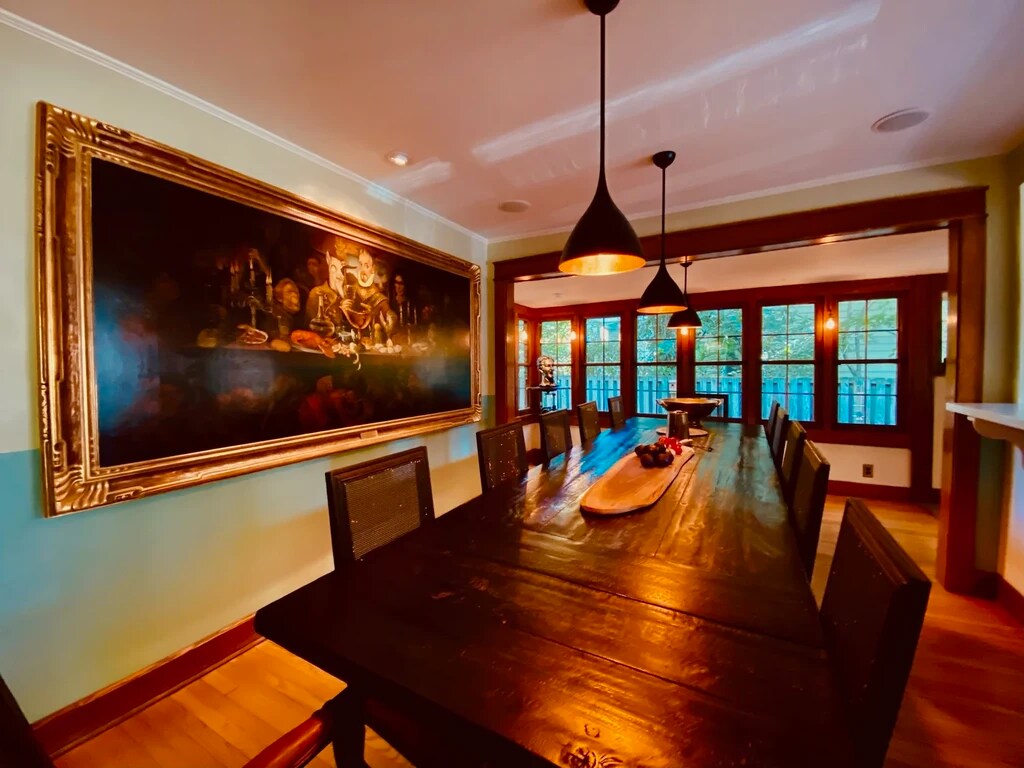 Located right in the heart of downtown Bloomington, this impressive four-story mansion is ideal for a large group looking for space, character, and a prime location. One of the standout features is the massive wrap-around front porch with a porch swing and built-in flower planters perfect for relaxing, studying, or hosting friends. In the back, the home offers two large decks, giving you plenty of outdoor space for entertaining, grilling, or enjoying warm Bloomington evenings. Inside, the home features stunning stained glass windows, original hardwood floors, and soaring vaulted ceilings that make the massive living spaces feel open and full of light. The large bedrooms offer plenty of room for personal setups, while the sunroom adds a bright, cozy space perfect for studying or unwinding. Additional features include: Off-street parking (plus a two-car garage with automatic door) Central air Dishwasher Lawn care included Large laundry room with extra storage Chandeliers in the dining room for added historic charm With its enormous space, outdoor decks, beautiful historic details, and rare downtown parking, this one-of-a-kind home is an incredible opportunity for a large student group looking to live somewhere truly unforgettable.
