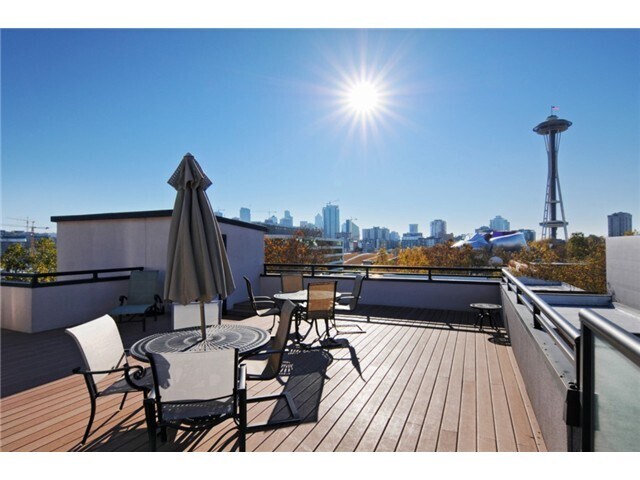 Live next to the Space Needle in this Walker's Paradise! Walk to QFC across the street, Restaurants, Seattle Center, Espresso, Shows, Services, and Bus Stops right out the front door. Save time, money, and gas by being in the Center of it ALL! Serana Condo Building (5th & Roy). 2nd Floor Unit. Big Reserved Parking Spot Included! - 2nd Floor Unit - Designer Kitchen! New Designer Stainless Steel Appliances and Slab Granite. Breakfast Bar and Eating Area. - Upgrades: Hardwood Floors, Crown Molding, Tile, and Granite. - European full tile bath. - Large Bedroom! Bay window in the bedroom and holds a Queen/King size bed. - Washer & Dryer in unit. - Included Reserved Garage Parking! The parking spot is large enough for an SUV in a Secure Garage. - Included Storage: Separate Storage Locker on same floor. - Rooftop Deck with full view of the Space Needle, downtown and Queen Anne. The deck is furnished with tables, lounge chairs, and BBQ. - No PETS and No SMOKING. - Responsive, Local and Tenured Owners.