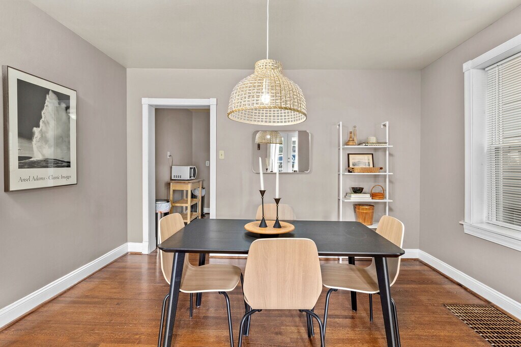Relax in this stylish 1BR unit in a quiet South City neighborhood. Just minutes from top restaurants, hospitals & parks, it's the perfect home base whether you're here for work or play. Enjoy a comfy queen bed, a fully stocked kitchen & a bright living room ideal for relaxing. - Tower Grove Park (5 mins) - The Hill – Italian Eateries (6 mins) - Barnes-Jewish Hospital (10 mins) - Downtown STL / Busch Stadium (12 mins) Key Features - 1 Bedroom (1 Queen bed w/ memory foam mattress) - In-unit washer & dryer - 1 Full bathroom (updated tile & fixtures) - Fully stocked kitchen w/ stainless steel appliances - Fast WiFi & 40" Smart TV - Bright & modern decor w/ natural light - Dedicated workspace - Free on-street parking - Quiet residential neighborhood - Central heating & ceiling fans throughout BEDROOMS + BATHROOMS The bedroom features a queen memory foam mattress, fresh linens, blackout blinds & hardwood floors. The bathroom is newly updated w/ modern tilework, a shower/tub combo, and essential toiletries provided for your stay. KITCHEN & DINING The kitchen has everything you need to cook at home: full-size fridge, oven, microwave, toaster, dishware, & cookware. Enjoy meals at the cozy dining table for four, right off the kitchen in a light-filled dining room. LOUNGE SPACE The living room is made for relaxation, featuring a plush leather sofa, modern glass coffee table, and a 40" Smart TV for all your streaming needs. A ceiling fan adds extra comfort, and there’s a desk for getting work done. OUTSIDE SPACE A spacious grassy backyard is perfect for a breath of fresh air or a morning coffee. While it’s shared with the neighboring unit, there’s plenty of space to enjoy.