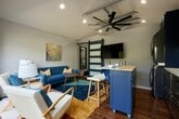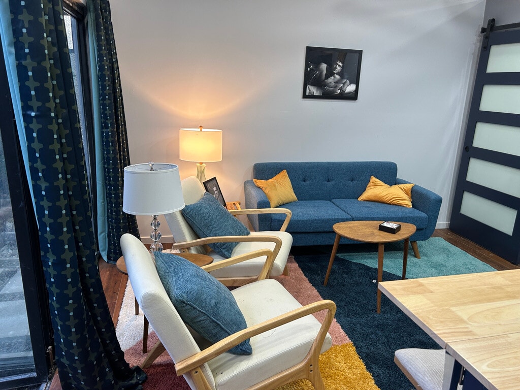 Tucked away in the highly desirable Magnolia Park neighborhood, this beautifully designed ADU offers the perfect blend of openness and privacy—your own serene retreat in the heart of it all. Fully furnished and thoughtfully appointed, the space features a large, open-concept living area highlighted by stunning accordion-style glass doors that span the entire front of the home, seamlessly connecting indoor and outdoor living. Step outside to your private patio—ideal for morning coffee, relaxing evenings, or entertaining guests. Inside, you’ll find soaring vaulted ceilings with ceiling fans, warm wood-style laminate flooring throughout, and a bright, airy atmosphere that instantly feels like home. The private bedroom is tucked away with stylish barn doors and includes an ensuite bathroom for added comfort and convenience. The kitchen is both functional and inviting—perfect for cooking and gathering—complete with a spacious island that’s great for entertaining. As an added bonus, enjoy access to a refreshing pool, making this private sanctuary feel like a true getaway. Experience comfort, style, and privacy—all in one of Burbank’s most sought-after neighborhoods.