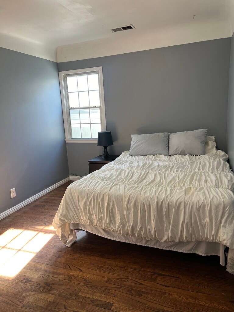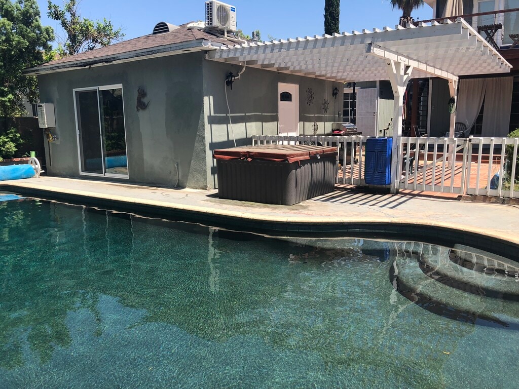 Remodeled private master bedroom with private entrance. Both the bedroom and house is furnished, spacious, has hardwood floors, and bright natural light. The home is located in Valley Glen, just minutes away from the new Noho West! It is a bright and cozy, 3-bedroom 2-bathroom house with hardwood floors throughout, a galley kitchen complete with all appliances, laundry room with washer and dryer and a great backyard complete with garden, fruit trees, pool and a hot tub! Large driveway for plenty of parking and the street has open parking. The neighborhood is quiet, very close to the 170 and 405 and less than 5 minutes to NoHo West. Looking for a long-term tenant, 1-year lease preferable and has work current paystubs. Rent is $1,350.00 which includes all utilities including Wi-Fi, free laundry, free parking, furnished home and a furnished bedroom. Must like dogs and cats, as a current tenant has an extremely well behaved senior pup that goes to work with her and a sweet cat. Please contact me with any questions!