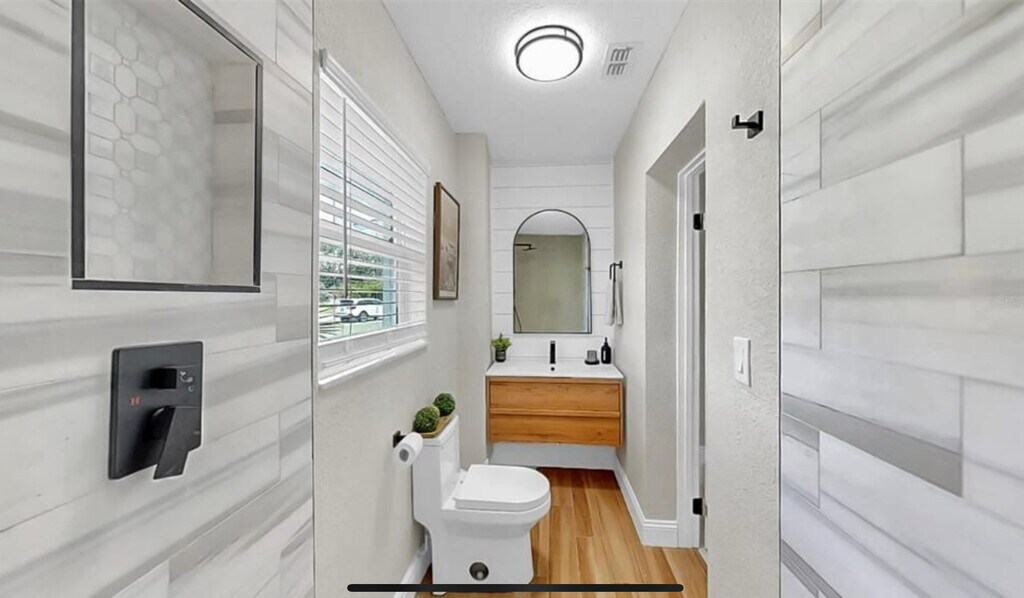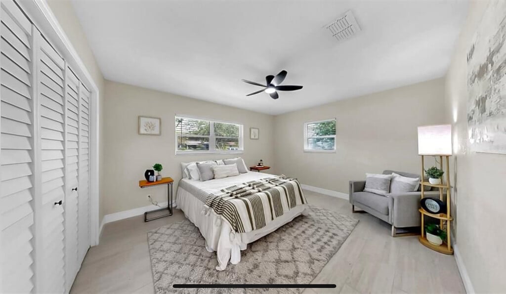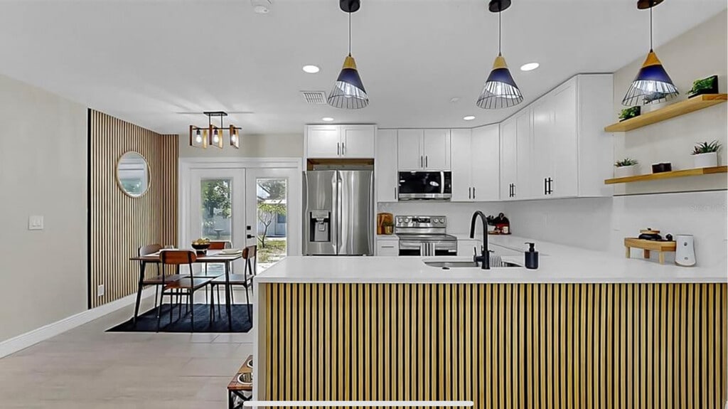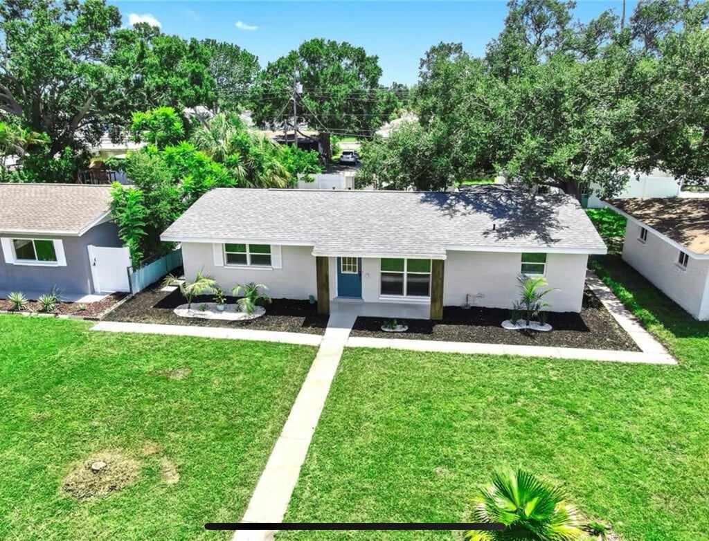 Be the first one to live in this freshly remodeled, open concept home. It did not flood during last year's storms so rest assured that you and your belongings are safe from flooding. New paint inside and outside, tile floors throughout. The electric fireplace brings a touch of modern to the living room along with the 65" TV which comes with the house. You will love the new kitchen with brand new stainless steel appliances, quartz countertops with a waterfall edge and room for 4 at the breakfast bar. The home also features a spacious primary bedroom with its own newly remodeled bathroom. Spend your evenings on the new paver patio in the backyard which also features an additional firepit patio and 2 sheds perfect for storage. There is alley access, carport and a laundry room that will accommodate a full size washer and dryer. Short drive to vibrant St Pete downtown, Tampa International Airport or world class beaches. Steps away from Whole Foods, Publix, Crunch Fitness, Crisp Park and Coffee Pot Park with boat ramps