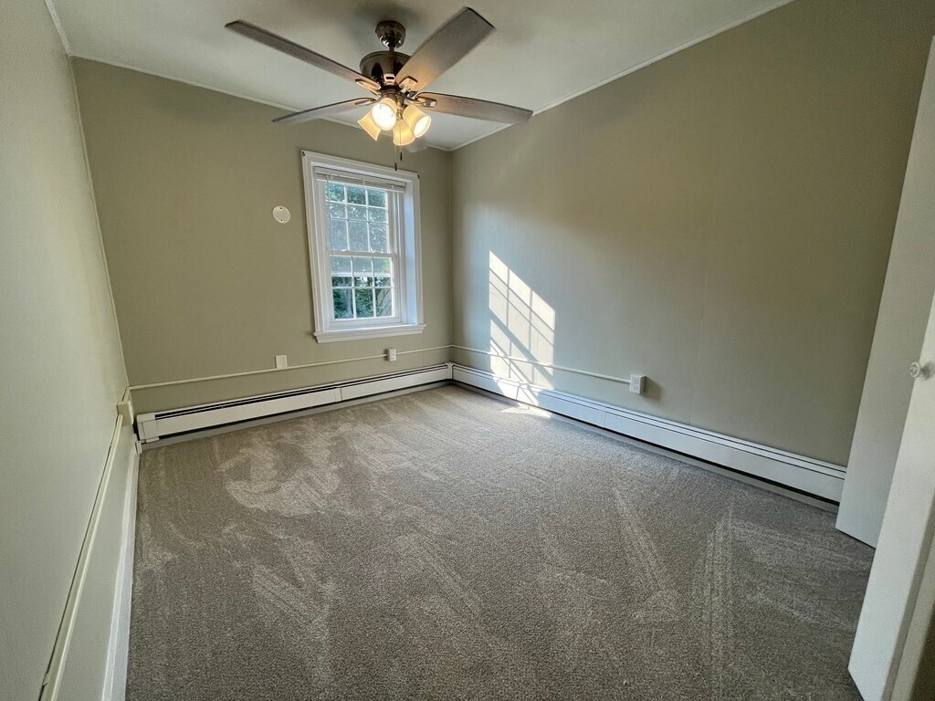 Enjoy the charm and character of a classic brick building, thoughtfully updated with modern finishes throughout! Beautifully renovated within the past five years, this 3-bed, 2-bath townhouse apartment is centrally located. The main level features a newer kitchen with stainless steel appliances, white cabinetry, granite countertops, and a peninsula with additional cabinetry and ample seating. The spacious living room leads to a private enclosed front porch. A 3/4 bath on the first floor includes a convenient stackable washer and dryer. Durable vinyl plank flooring throughout the main level allows for easy maintenance. Upstairs, you’ll find three generously sized carpeted bedrooms—each with a closet and ceiling fan—plus a second full bath. This unit also includes a full unfinished basement for private, secure storage, exclusive use of outdoor stone patio, two off-street parking spaces, and services such as trash removal, snow removal, and landscaping. Economical gas heat. No pets.