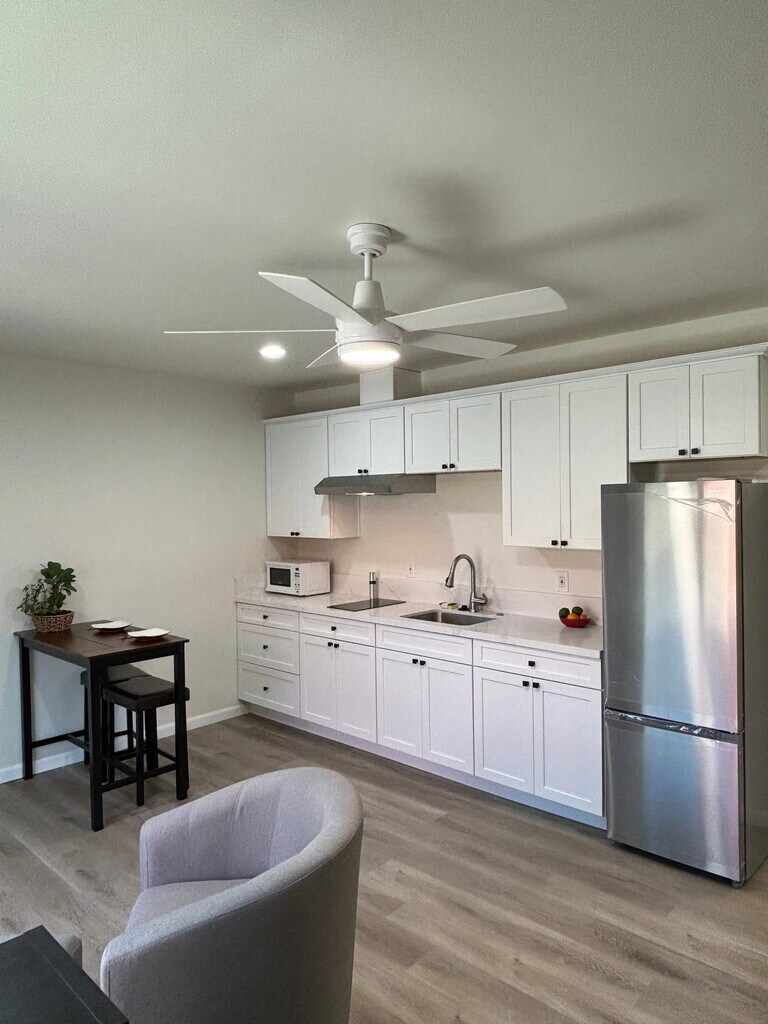 New furnished apartment that is a 10 minute walk to SDSU. Kitchen has quartz countertop, new appliances, and plenty of cabinets. Bath with large vanity and full tub/shower. Living area has ample closet and drawer space. Unit has AC and heating. Apartment has a large private patio. Laundry, with new washer and dryer, is shared with the property owner and is next to the unit. All utilities and WiFi are included. Available August 15, 2025. Available for tours Saturday 5/17 10AM - 2PM. Contact us to schedule a tour.