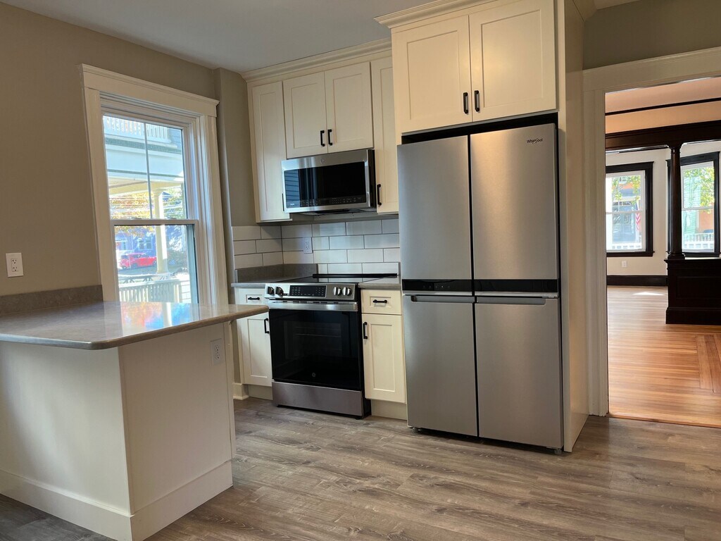 Lovely renovated This apartment offers an expansive 1,195 sq. ft. of elegant living space, featuring gleaming hardwood floors, soaring ceilings, and lots of windows that flood the interiors with natural light. The kitchen is a true centerpiece — boasting stone countertops, custom cabinetry, and top-of-the-line appliances that make entertaining effortless. Spa-like bathroom features sleek walk-in showers, modern fixtures, and a contemporary aesthetic for a luxurious everyday retreat. Comfort and convenience come standard with high-efficiency heating, central air conditioning, and thoughtfully designed layouts. Unwind on your private front porch, the perfect spot to enjoy a quiet morning coffee or evening glass of wine. Ideally situated just a short stroll from downtown, you’ll have premier access to shopping, dining, the East Bay Bike Path, and everything this vibrant community has to offer. Now leasing — secure your opportunity to live in one of the area’s most stylish and sought-after neighborhoods.