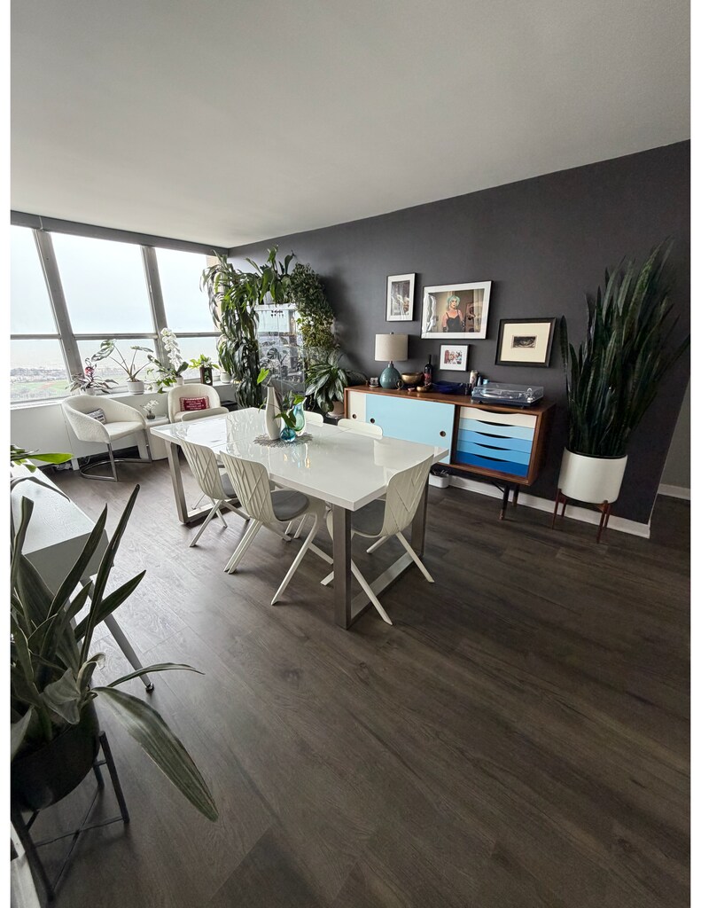 I am renting out a luxury, two bedroom one bathroom condo in the Park Place Tower high rise building. Amazing view and amenities! Price includes internet, cable, heat, and air conditioning! Tenant only pays electricity (for appliances) separately. The entire condo has been remodeled over the last two years, with superb finishing touches down to every detail (more on that below). You will also enjoy a beautiful, unobstructed view of Lake Michigan and Chicago's north side from the 43rd floor! The building has a huge outdoor pool with grill and seating area (great for lounging or parties), gym, cafe, dry cleaner, spa, dog spa, and grocery store on the first floor, laundry in the basement, and party and theatre rooms to rent for a nominal fee. Act now because this unit won't last long! Additional Details: Fresh light and dark gray paint and beautiful gray/brown vinyl plank flooring throughout the unit. New, gorgeous light fixtures in the bathroom, kitchen, dining area, smaller bedroom, and foyer. Stunning view of Lake Michigan from both bedrooms and the dining/living area! Remote controlled gray faux fabric blinds on all windows (near blackout blinds in both bedrooms). Completely gutted bathroom with walk-in shower, natural stone tile, floating cabinet, lighted mirror, luxury heated/lighted remote controlled bidet toilet (overall spa finishings)! Completely renovated kitchen with granite countertops and newer appliances! Two bedrooms, although I have used the master (very large) bedroom as a living room and added wood slatted closet doors to the wardrobe closet to make it look like a beautiful wall instead of a closet. That closet has built-in shelving for clothes or storage. Smaller second bedroom with gutted closet for additional space and widened door opening for openness and visual appeal. A large wardrobe can fit in that closet space or the separate walk-in closet can be used instead. Large walk-in closet with custom wardrobe included. Acrylic floating shelf in foyer included. The building has storage units and bike storage available for a fee if additional storage is needed. Pets allowed for a small fee.