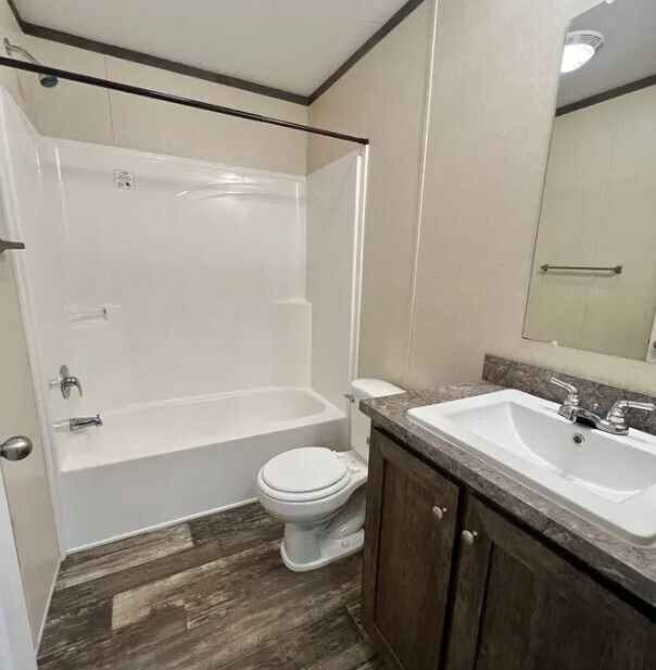 Move in ready 3 bed, 2 bath home with spacious great room and easy care vinyl flooring throughout! Primary bedroom suite with walk in closet and private bath. Energy efficient home! Stop in and see it today!