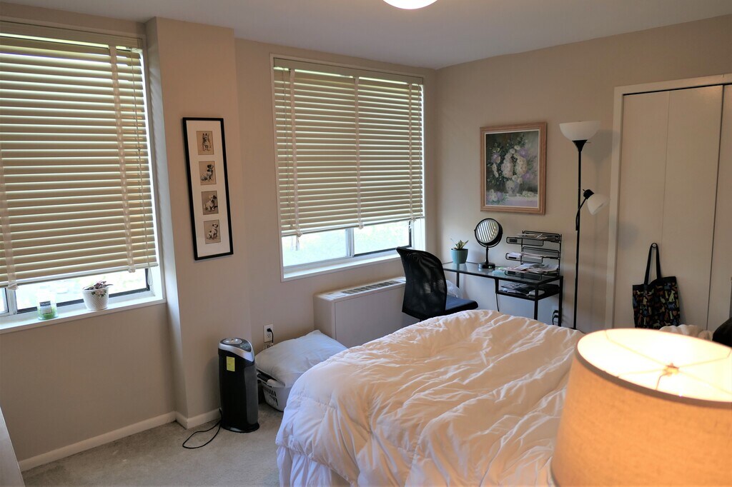 Large 960 sq ft two bedroom, 1 & 1/2 baths, open floor plan, condo located on the 7th floor corner unit, a lot of storage space and huge windows. All UTILITIES are included (electricity, gas, water, and trash). The wood floors in the common living area have been refinished and bedrooms are carpeted. There is plenty of free parking on site lot. On-site RV, boat, kayak/canoe storage is available and additional bike storage. River Towers is perfectly located on 26 acres of park-like land. Residents enjoy many amenities - outdoor 25-meter swimming pool with lap lanes, tennis and basketball courts, a picnic grove, garden plots, and a playground. There is an exercise room and spacious laundry facility in the building. Walking and bike paths along the river lead to Old Town or south to Mount Vernon.