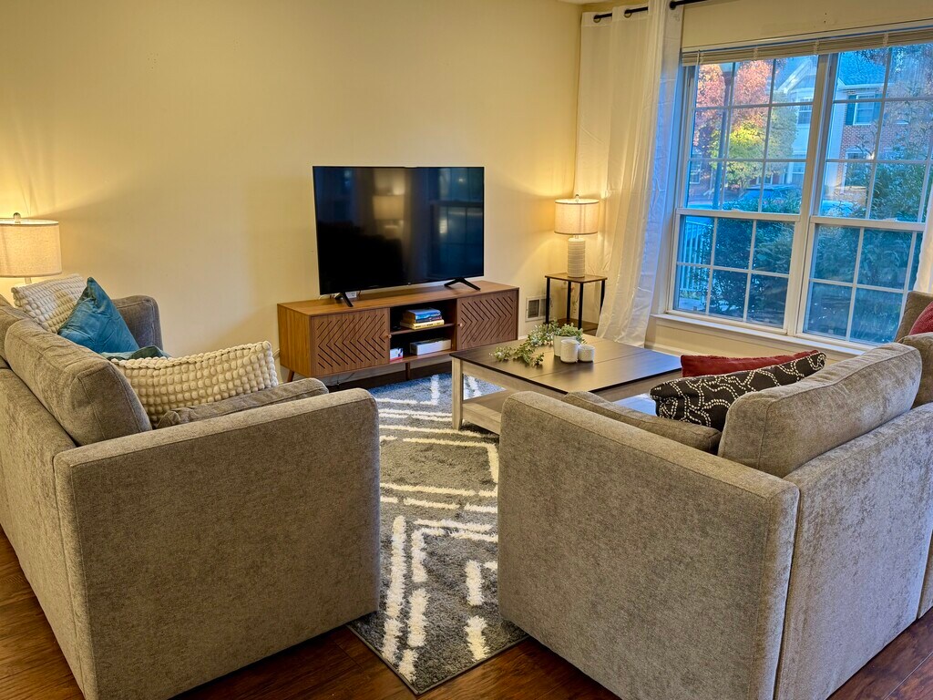 Impresionante casa adosada de tres dormitorios y dos baños y medio frente al este, con vista a ladrillos, con luz natural durante todo el día. ¡El patio se abre a un campo abierto con mucha privacidad! El hotel ha sido recientemente renovado en todo el hotel, incluyendo encimeras de granito y electrodomésticos de cocina nuevos, pisos nuevos, baños mejorados, etc. ?? ??Servicios: Piscina, patio trasero privado, patio de juegos, canchas de tenis y acceso a la casa club. Aspectos destacados del estilo de vida: - A minutos de las tiendas y de las opciones de comida que hacen agua la boca. - Fácil acceso a NYC y Philly (parada de autobús a poca distancia a pie/cerca de la estación de tren) y muy cerca de las principales autopistas. - Calle y vecindario para toda la familia - No se permite fumar, no se permiten mascotas.