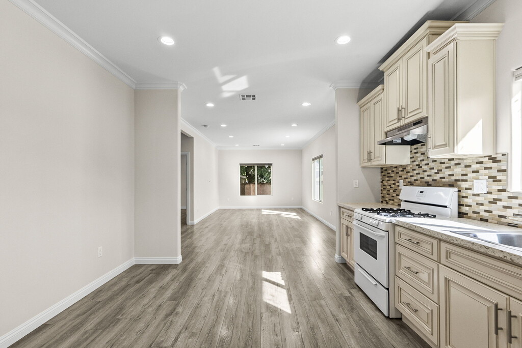 Now available for lease at 6715 Cedros Ave in Van Nuys, this beautifully built 2018 ADU offers approximately 1,080 square feet of bright, modern living space with high ceilings and an exceptional open layout. This spacious 2 bedroom, 2 bathroom residence features a thoughtfully designed floor plan with expansive living and dining areas that flow seamlessly into a large upgraded kitchen. The kitchen is equipped with abundant cabinetry, generous counter space, a stylish mosaic backsplash, stainless steel dishwasher, gas range, and ample room for full size appliances. Ideal for anyone who enjoys cooking or entertaining.The primary suite offers excellent natural light and a clean, contemporary feel. One bathroom features a sleek standing shower with modern tile finishes, while the second bathroom includes a full tub and shower combination, providing flexibility and comfort for residents and guests alike. Additional features include recessed lighting throughout, wide plank flooring, dual pane windows, mirrored closet doors, and a clean, expansive cemented outdoor area. This outdoor space provides plenty of room for seating, entertaining, and convenient car parking. The property also includes an electric vehicle charger, making it ideal for tenants with EVs. Located in a desirable pocket of Van Nuys, the property offers convenient access to major freeways including the 405, 101, and 170, providing easy connectivity throughout the San Fernando Valley and into West Los Angeles. Nearby landmarks include Lake Balboa Park, the Japanese Garden, Woodley Park, and the Sepulveda Basin Recreation Area, offering abundant outdoor activities and green space. The home is situated near well regarded local schools and close to shopping and dining along Ventura Boulevard, Sherman Oaks, and Van Nuys Boulevard. Grocery stores, fitness centers, coffee shops, and everyday conveniences are all within short distance. This newer construction ADU combines space, functionality, modern finishes, and an excellent location into one compelling lease opportunity. Move in ready and designed for comfortable living.