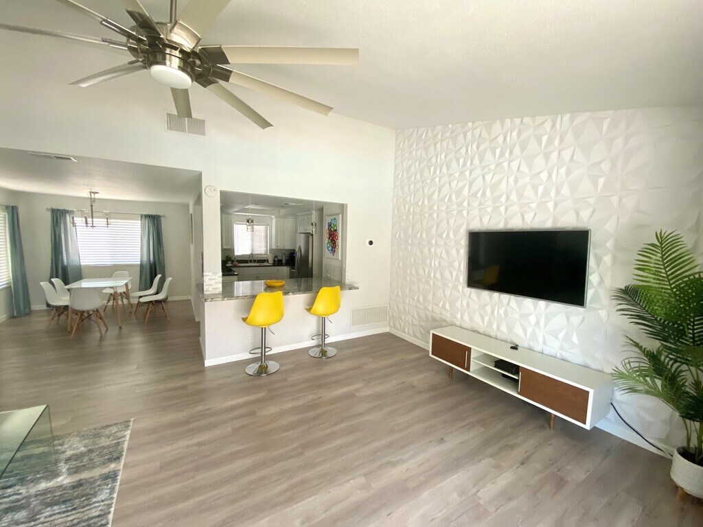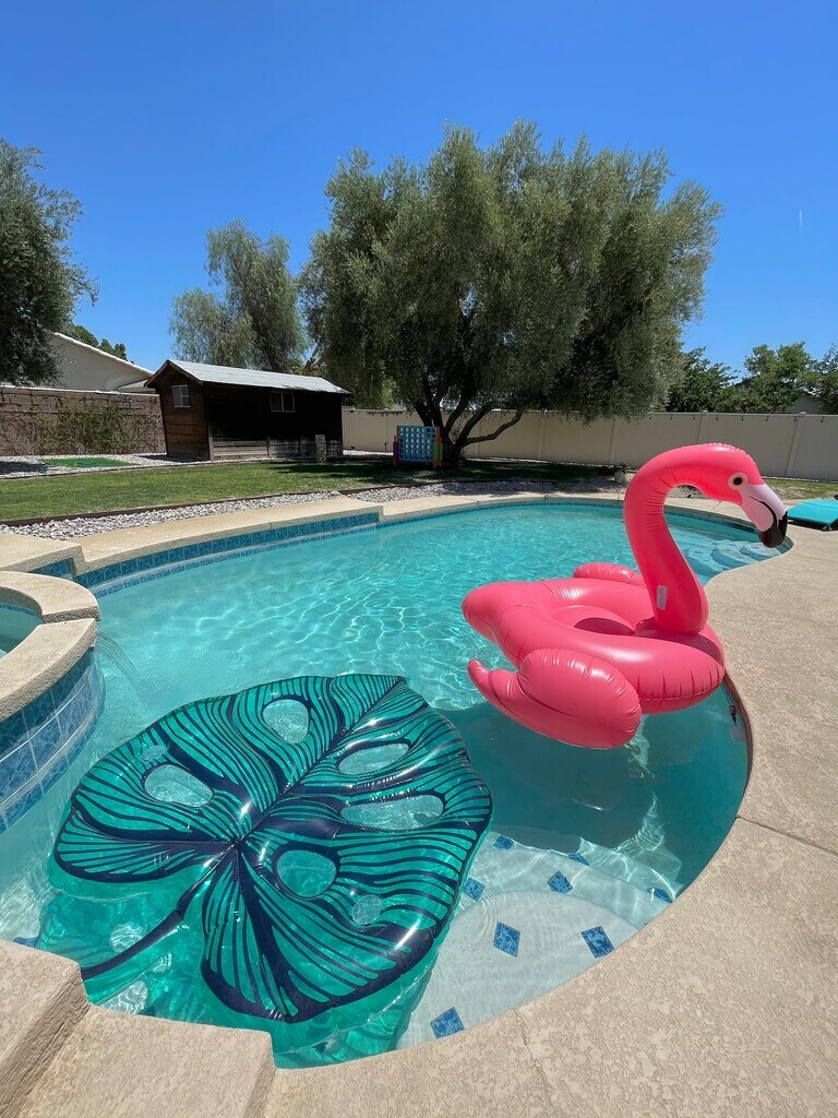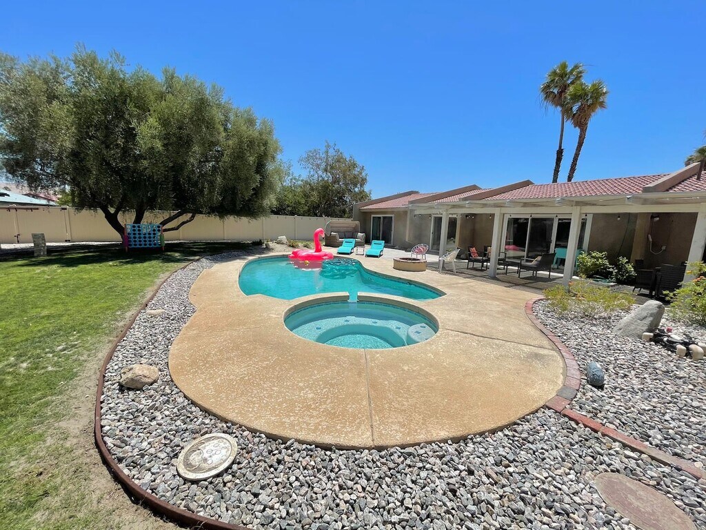 Disponible a partir del 6/1/24 Hermosa casa de 3 dormitorios y 2 baños con piscina y bañera de hidromasaje. ¡Esta casa de 140 metros cuadrados se encuentra sobre un tercio de acre de tierra! Esta casa tiene todo lo que necesitará con un gran plano de planta abierta, techos altos y un enorme patio trasero. Ubicada en el muy deseado vecindario Rio Vista, esta casa completamente remodelada cuenta con una cocina nueva, encimeras de granito y electrodomésticos de acero inoxidable, ventiladores de techo, un enorme garaje para automóviles, pisos laminados nuevos y azulejos para el baño. Disfrute de vistas panorámicas de las montañas con todo el nuevo paisaje del desierto. Convenientemente ubicado cerca de las principales autopistas, plazas de compras, supermercados, nuevos casinos y mucho más. Alquiler vacacional perfecto, disponible a corto (más de 30 días) o largo plazo. Completamente amueblado y llave en mano. El propietario paga por Internet, energía solar (¡mínimo a CERO servicios públicos!), jardinería y personal de piscina. El inquilino paga el gas y el agua y cualquier excedente eléctrico. Se aceptan mascotas pequeñas (menos de 18 kilos) y no se permite fumar. No se permite fumar, se permiten mascotas pequeñas de menos de 18 kilos.