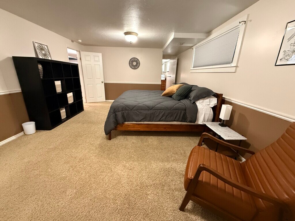 Ideal for a young couple. Private access. Utilities included. Large spacious basement, double closets in the bedroom, double sinks in bathroom, double shower head shower. Full kitchen and laundry room. Large windows, lots of natural light so it doesn't feel dark. This is a basement, you can hear upstairs tenants at times. Great neighborhood and easy access to canyons and I-15. Lots of storage space! Reach out with questions. If interested, reach out and I'll send you my application. Available immediately. $1500 monthly total.