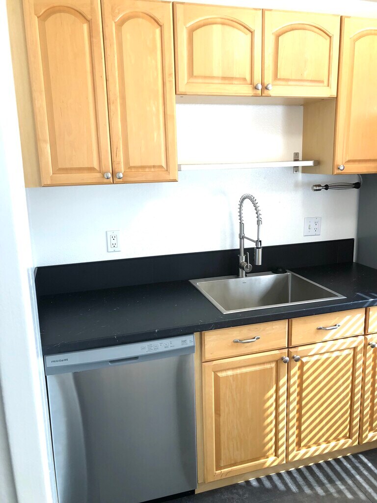 Prime location in Fashion Valley San Diego. West of the 163 freeway. Located at 6780 Friars Road. Walking distance to Fashion Valley mall. Two minute drive to University of San Diego. Bright and clean 500+ square feet remodel with west facing windows. New appliances. Top floor corner unit with one common wall. One assigned uncovered parking spot. Secured and gated community. Common area laundry rooms (4 total), workout room and pool/jacuzzi/sauna. Monthly rent includes water, and internet connection. 1 year lease No smoking No pets