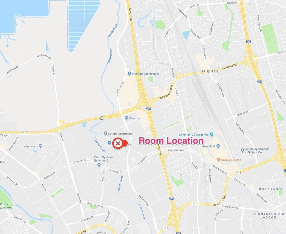 ** Esto es para una HABITACIÓN, NO para toda la casa **. Un dormitorio privado amueblado de gran tamaño con baño compartido con otro hombre, pero con lavamanos PROPIO disponible el ** 12/1/23 **. La sala no comparte ninguna pared común; vea las imágenes de la sala a continuación. Esta habitación es solo para ** 1 ** persona. Ver fotos. La lavandería también está en el primer piso. Listo para presentaciones presenciales o virtuales. Cerca de las principales empresas, Tesla, KLA, Cisco y empresas circundantes. Este lugar se encuentra estratégicamente ubicado cerca de 237/101/880/680, Great Mall, Milpitas Square, WalMart, Costco y toneladas de restaurantes y tiendas, todo dentro de un radio de 10 minutos y 8 kilómetros/5 millas. Si la ubicación es su principal prioridad, no puede superarla. ** La comunidad ** 1. El alquiler cuesta $1,350 por mes (sin incluir servicios públicos) y tiene un arrendamiento de 12 meses. 2. Servicios públicos: PG&E; 600 Mbps Internet, Papelera y agua, todos divididos entre los 4 arrendatarios, alrededor de $80 a $100 por mes, dependiendo del uso. 3 Incluye cama grande, escritorio y silla; usted proporciona sus propias sábanas, almohadas y mantas. 4. Caltrans (estación de Lawrence) se encuentra a 11,2 kilómetros/7 millas, a 15 minutos del automóvil si va a la ciudad o Fremont Bart se encuentra a unos 30 minutos EN CONTRA del tráfico matutino. Milpitas Bart a 5 minutos de distancia. 5. Gimnasio, piscina, cancha de tenis, cancha de canasta y senderos de Coyote Creek (aficionados a correr y andar en bicicleta), todo a 2 minutos a pie de la distancia de la casa. 6. Extremadamente silencioso, como está anidado en una zona reclusa; es como un resort privado durante los fines de semana, ya que no hay tráfico innecesario que entre y salga. ** La casa adosada ** 1. Esta es una casa adosada de 9 años de antigüedad, por lo que todo es bastante nuevo y actualizado. Refrigerador, lavadora/secadora, estufa, horno de microondas. 2. Es un baño de 4 dormitorios y 3,5 pisos. ** Las personas (vivieron actualmente) ** - otros 3 hombres (de veinte años o treinta años o más) trabajan en las empresas de alta tecnología circundantes. El propietario de la propiedad NO vive en la propiedad. ** Estacionamiento ** 1. Estacionamiento en garaje basado en un sistema rotacional con otros 3 automóviles. 2. Hay plazas de estacionamiento alrededor de la casa, por orden de llegada. ** Acerca de usted ** 1. Empleo estable y antecedentes limpios (habrá la verificación de antecedentes de alquiler estándar). 2. La preferencia del candidato es alguien que trabaja en una de las empresas de alta tecnología del sector en Milpitas. Los estudiantes también son bienvenidos. 3. No se admiten mascotas. 4. ¡Cocinar bien! 5. Los huéspedes ocasionales que pasan la noche en el hotel pueden recibir notificaciones anticipadas. Si crees que encajas bien, cuéntame algo sobre ti, un enlace de Linkedin y un número de teléfono de contacto para que te envíe un mensaje de texto o vuelva a llamar. Primero le enviaré un mensaje de texto.