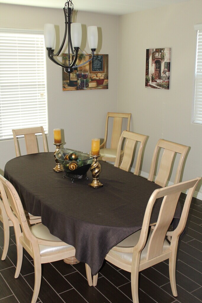 Welcome to your perfect Arizona stay! This very spacious 3,075 Sqft home offers comfort, convenience, and an unbeatable location- ideal for families, game-day trips, and entertainment getaways. 5 Bedrooms, 3.5 bathrooms, and large kitchen with modern finishes. Furnished or Un-furnished Available. *Location, Location, Location - 6-min drive or 1.5 mi walk to State Farm Stadium (Arizona Cardinals) - 1.2 mi (walk or 6-min drive) to Westgate Entertainment District- Dining, shopping, nightlife, events - Easy access to major highway Flooring: Carpet and tile Natural light and windows: The home features walls of windows flooding the interior with natural light, enhancing the home's open and airy feel. There are also two floor-to-ceiling sliding doors on the first floor. Storage and closets: Two large closets on the second floor for extra storage. First floor has a large pantry in the kitchen and sizable coat closet next to the garage. Appliances: Top-priority amenities to include: central air conditioning, a dishwasher, and in-unit laundry with washer and dryer included. The kitchen has desirable features like stainless steel appliances and a double oven. Oversized brand new microwave. Smart home features: Smart thermostats. Utilities: Paid for by renter. Restrictions: No Smoking. Pets limited to a total of three. Home is in a gated community with a strict HOA. Before changes are made to the home exterior permission must be granted. 12-month lease preferred (negotiable). Available furnished or unfurnished. Bright, well-maintained home. Tenant pays for utilities. Security deposit and renter's insurance required. Pets considered. No smoking.