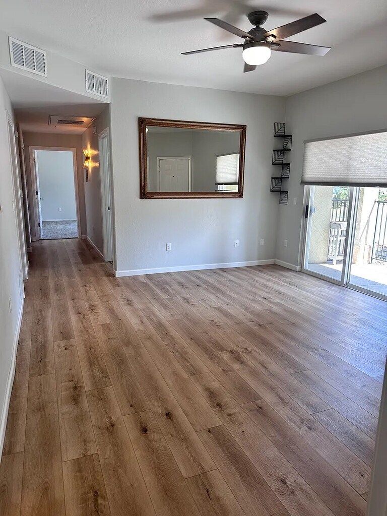 Single story ground-floor unit with 3 spacious bedrooms and 2 bathrooms, a dedicated covered parking space. This is the largest unit available in Silver Creek. Located on the backside perimeter of the complex with southern exposure, it is light and bright. Enjoy your enclosed back patio with amazing unobstructed views of the mountains. Beautiful wood laminate flooring, blinds and drapes on all windows, and tasteful gray carpet in the bedrooms., Items included are mounted smart TV's (55" and 42"), refrigerator, washer, dryer. HOA amenities include pool, hot tub, gym, clubhouse, landscape maintenance, snow removal, all exterior maintenance, sewer, trash, water, cable and internet ($150 utility fee for cable and WiFi mandatory).