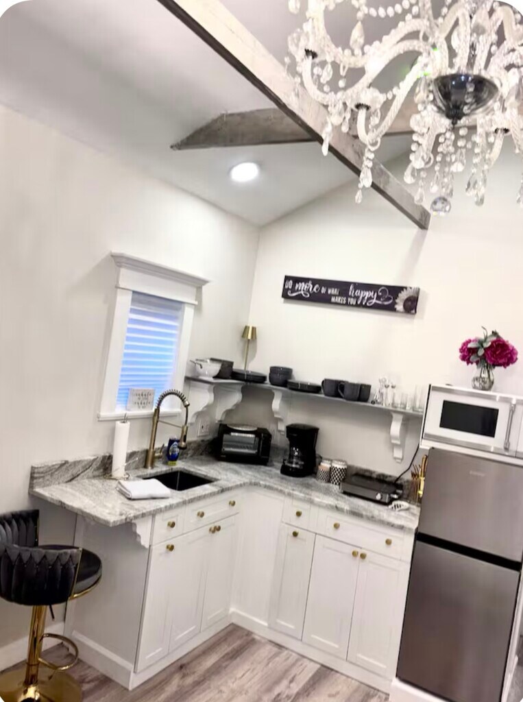 Studio cottage~~Private cottage, plenty of parking washer and dryer in unit. Everything is brand new furniture is included that TV table, chairs, all kitchen, amenities, dishes, plates, forks pots, and pans everything you need to move in..