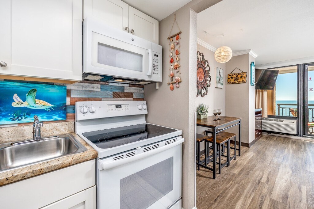 Frente al mar en directo. ¡Servicio estupendo amaneceres. Orientado a la familia y menos congestionada área de Myrtle Beach. Cerca de todos los restaurantes y atracciones. Nueva cama King y decoración!