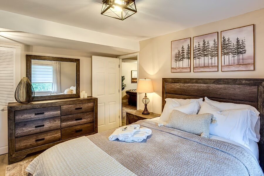 Welcome to Starlight, part of the Rainshore Retreats Collection, named for its natural beauty and peaceful, starry nights beneath the cozy pines. This immaculate 1-bedroom apartment offers a relaxing and functional space designed for traveling nurses and professionals seeking both comfort and convenience. Enjoy fast internet for work or streaming and unwind in a tranquil setting surrounded by nature. Located in the heart of University Place, this place offers an easy commute to all Tacoma hospitals, Joint Base Lewis-McChord and is close to business centers, Trader Joes, Whole Foods, Starbucks, gyms, and a great selection of local restaurants. Nearby hiking spots and parks provide the perfect escape for quiet walks or weekend exploration. Inside, you will find everything you need to feel right at home from a Smart TV (just sign in and enjoy your favorite streaming services) to a fully equipped kitchen and thoughtful touches throughout. The lights, heating, and fans are all Alexa voice-activated, adding modern comfort and convenience to your stay. With all utilities and landscaping included, you can simply settle in, relax, and focus on what matters most.