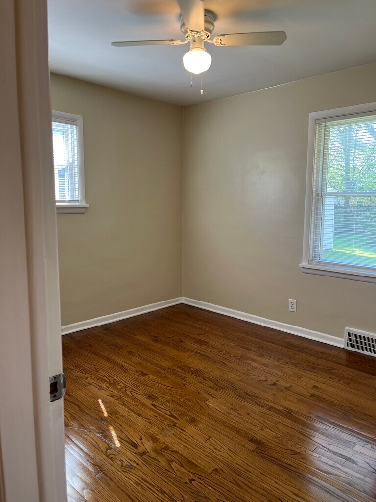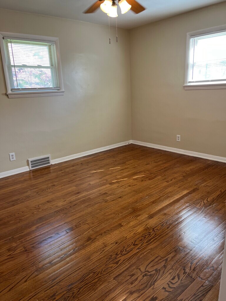 Immaculate three bedroom, Cape Cod in Boardman, Ohio. This home has been completely painted inside. It has two bedrooms and a living room that are hardwood floors on the first floor, and a large bedroom upstairs, which is carpeted, and a full basement. It also has a new kitchen floor and a deck on the back of the home. The home has central air and an attached one car garage. It comes with a stove and a washer and dryer. Small pet considered.