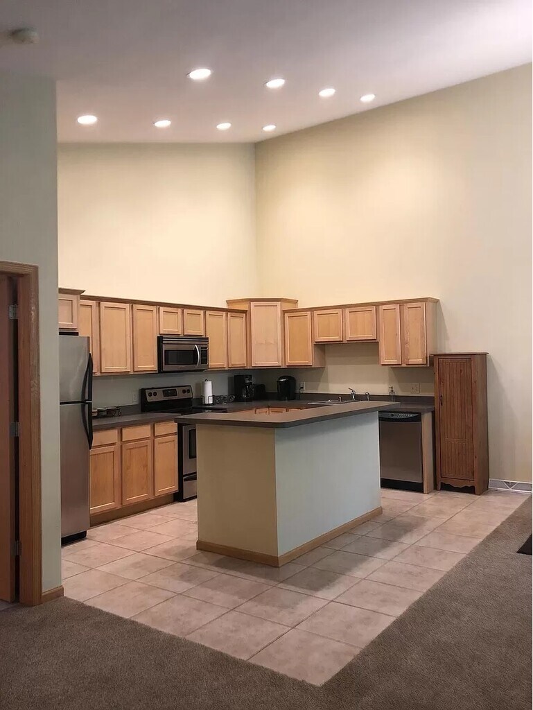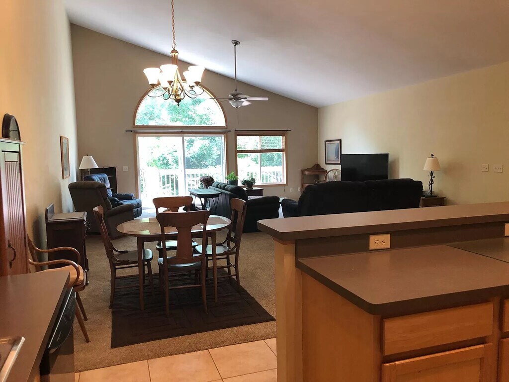 Very spacious condo on a quiet cul-de-sac. Private side unit with open floor plan, big bright windows, 3 large bedrooms, 2 full bathrooms, large deck, stainless steel appliances, island/bar in kitchen, 2 car garage, washer/dryer in unit and a full unfinished basement. All yard work and snow removal is handled for you at no additional expense. Behind the condos are 2 ponds with a lot of wildlife. Located close to Interstate I-94 and also within walking distance to the Lake Mills elementary school. The condo is incredibly spacious with lots of storage. Dogs and cats allowed for $25/month rent.