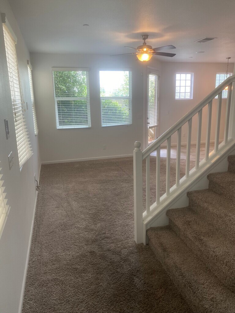 This 3-bedroom, 2.5-bathroom property at 7045 N Harmony Dr offers 1,495 square feet of living space. The interior features a loft layout, with an open concept living room and a kitchen equipped with stainless steel range, oven, dishwasher, microwave and granite countertops. Each bedroom includes walk-in closets, and the bathrooms feature double vanities and a tub/shower combination. Additional amenities include air conditioning, tankless water heater, ceiling fans, and high-speed internet access. The exterior boasts a private yard and a patio, ideal for outdoor lounging. The property is located in the Elev8tions at the Bluffs gated community and includes access to a community pool. This charming, energy-efficient home is within walking distance to Tatarian Elementary School, Orchid Park, shopping, dining, and entertainment including SaveMart, Ampersand, Branch Breakfast, Starbucks, Mad Duck, Syctron Indoor Playcenter and more. $2200/month. Some small pets allowed with pet deposit. Washer/dryer hookups are also provided.