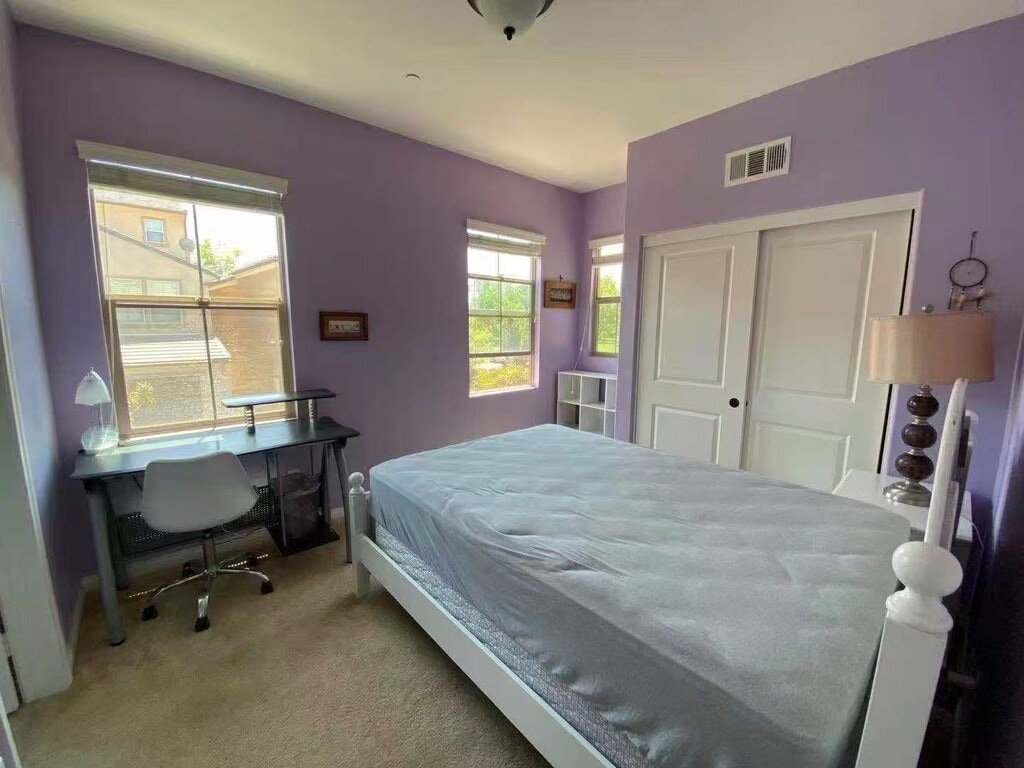 This spacious room available on the second floor of a clean, well-maintained 5-bedroom, 4-bathroom single-family home. The house has three levels in total. Room details: You’ll share a bathroom with just one other tidy, considerate person. The room is quiet, with plenty of natural light. Shared spaces include a fully equipped kitchen, cozy living room, dining area, and a beautiful backyard — perfect for relaxing. Garage storage available for your bike or extra belongings. Neighborhood highlights: Located in Portola Springs, a safe and peaceful neighborhood in Irvine. Plenty of street parking available. Just steps from a small park, 5-minute walk to a swimming pool and tennis courts, and 5-minute drive to Ralphs, LA Fitness, and other shops.