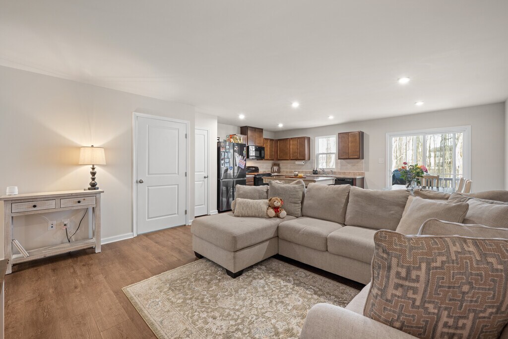Windy Hill Towns – | Built 2024 | 1,902 Sq Ft | Garage + Driveway | Walkout finished basement Nearly new, thoughtfully upgraded, and move-in ready. Welcome to 71 Southwind Drive, a 2024-built townhome in the sought-after Windy Hill Towns community — offering 1,902 sq ft of finished living space, a flexible layout, and the confidence of all major systems less than one year old. The open-concept main floor features a modern kitchen with black and stainless-steel appliances, dark shaker cabinetry, tile backsplash, bright dining and living areas that flow seamlessly together. A powder room off the foyer and a deck off the kitchen make entertaining easy. ?? New luxury vinyl plank flooring extend throughout the entire first floor for a clean, cohesive look. Upstairs, enjoy three spacious bedrooms, including a primary suite with a private bath and large walk-in closet, plus a full hallway bath and second-floor laundry for everyday convenience. The fully finished walk-out basement expands your living space with sliding door access to the yard and two bonus rooms — perfect for home offices, a gym, hobbies, or storage. Outside, you’ll find a 1-car garage, and private driveway for additional off-street parking. With modern construction, upgrades , and low-maintenance living, this home delivers both comfort and peace of mind — all in a friendly neighborhood close to shops, dining, and major highways.