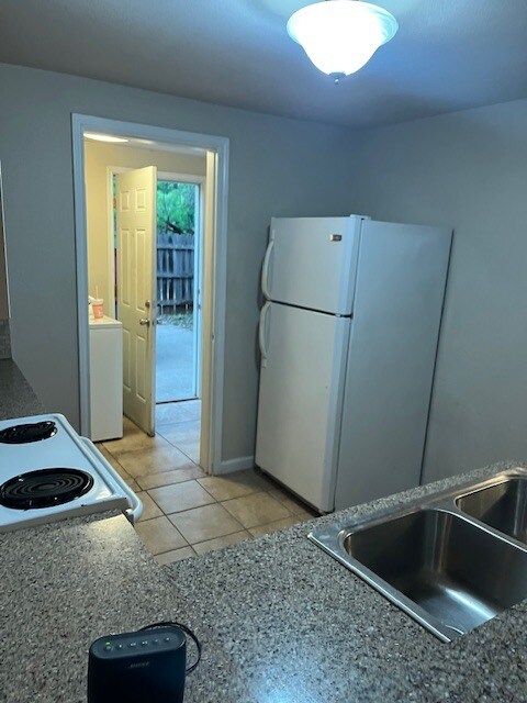 Apartment is 8 years old. 550 sq. feet. Comes with a washer and dryer and has a concrete private concrete parking space. Refrigerator, electric, stove and microwave. The water and trash pick up bill are paid by the front house. The house is all electric. Very clean apartment. No pets please.