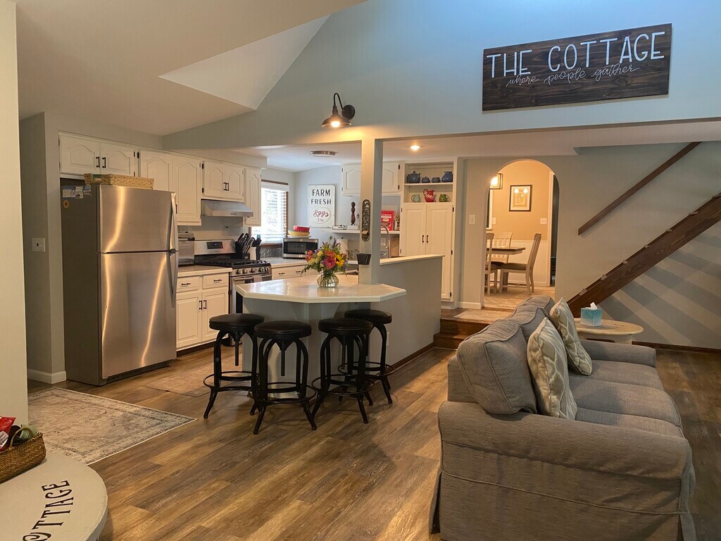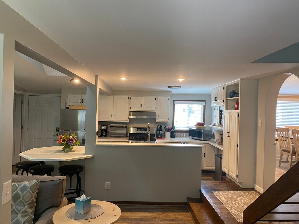 Seasonal Rental. Fully furnished 3 bed/2 bath home! Enjoy two large living rooms and 3 bedrooms with an added cozy loft area. The lower level bedroom has a queen bed and on the upper level there are two bedrooms, the first is an ensuite with a queen bed and a half bath and the other has a set of twin beds. Back downstairs, the kitchen is fully equipped, sharing space with the large open family room which has plenty of seating. Outside, a large deck overlooks the backyard and fire pit. Walk to downtown beaches, restaurants shopping. 1-2 miles from grocery and Elk Rapids schools. Utilities are the responsibility of the tenant. This is a seasonal rental, September 1 to May 31. $2100 (includes snow removal and lawn care), there is a $2100 security deposit. Utilities are not included and are the responsibility of the tenant.