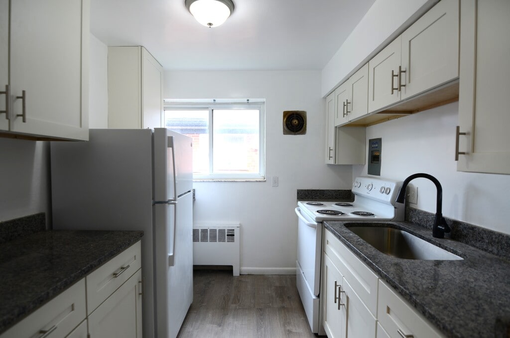2HAB apartamento en limpio, tranquilo, seguro y de & 4 familia con pisos de madera noble, cocina completamente equipada con hornillos, refrigerador. Funcionan con monedas lavadora & secadora en el edificio, estacionamiento fuera de la calle.