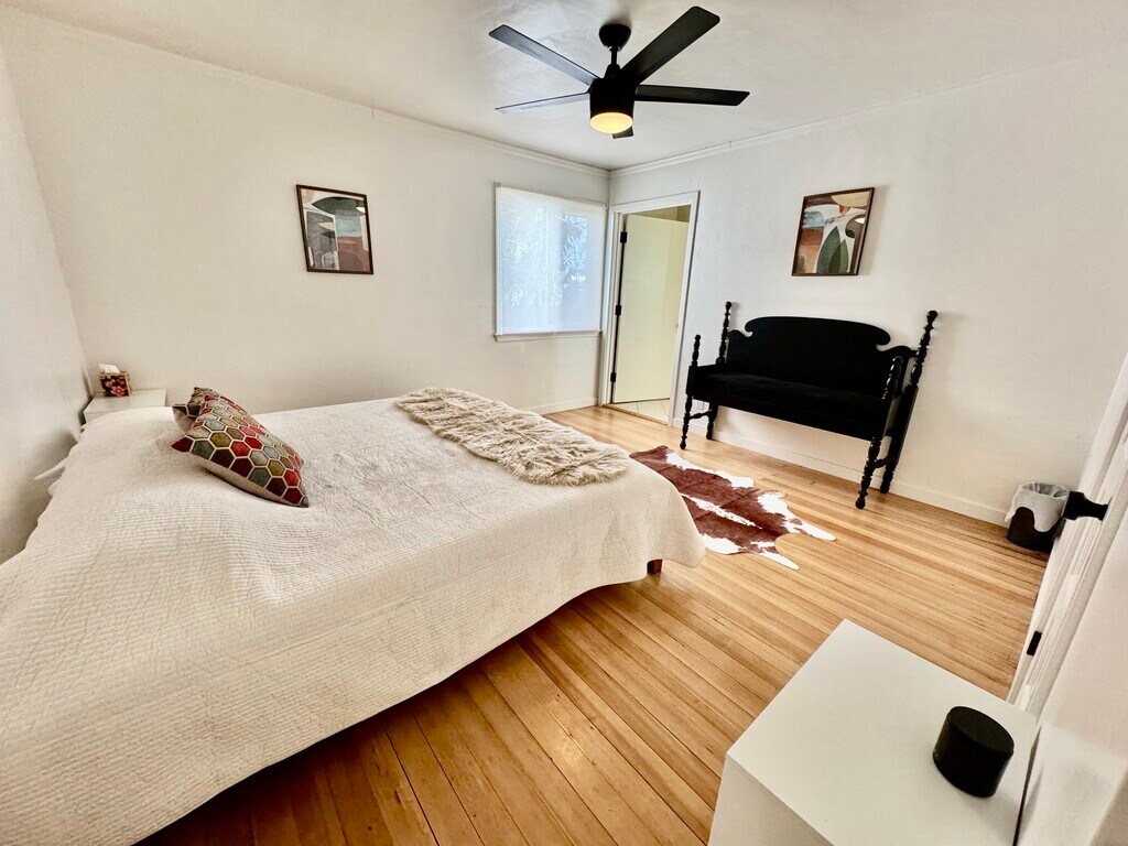 Come stay at Loma Street Oasis, a fully furnished 2 bedroom, 2 bathroom midcentury modern home. Price of rent includes WiFi & landscaping, Utilities are the responsibility of tenant. This centrally located home is tucked away on a tree lined street, and offers a wood fireplace, a fenced backyard with seating, as well as a large garage for storage. We would consider a small dog at this location. Shorter lease terms considered.