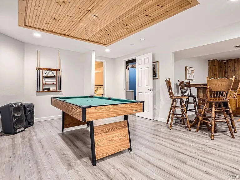 Recently remodeled house on a quiet Cul de Sac in Arvada with 3BR/3BA/2350SF. The main floor has beautiful wood floors throughout the Living Room with wood burning fireplace, Dining Room, full bathroom and Kitchen with Granite counters and Stainless Steel appliances. Upstairs has 2 bedrooms with a shared bathroom. The finished lower level has luxury vinyl tiles, bedroom, full bathroom, laundry area with washer and dryer plus a large recreation room with a bar, table and chairs and pool table. Features include central air conditioning, fenced yard with covered deck, attached two car garage, new flooring, new countertops and conveniently located to the community pool, shopping, restaurants, entertainment and easy access to Denver and Boulder. Please contact me with a little about you and your situation to schedule a showing.