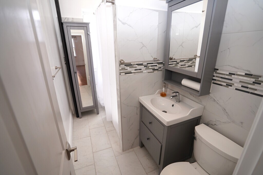 Renovated and Modern Two Bed with Private Deck! This apartment has been totally renovated and it's in excellent condition. There are high ceilings, really nice bamboo flooring, and freshly painted walls that create a serene and inviting atmosphere. The living room is extra large and there is plenty of space to set up a dining area as well. The kitchen is a chef’s dream, featuring tall, high-end shaker cabinets with ample storage, a sleek glass tile backsplash, stainless steel appliances, modern textured floor tiling, and a cozy breakfast bar for two. Both bedrooms are generously sized and include custom-built closet systems, with the back bedroom offering direct access to a private deck for you to relax on. Additional upgrades include two installed Midea Energy-Efficient A/C units, a portable floor A/C unit, and an under-sink reverse osmosis water filtration system. Rent includes heat and hot water. Laundry is in the condo complex. Sorry, no pets per the condo association. Owners require good income, good credit, 1st month's rent, and 1 month security deposit. There is no broker fee. The unit is available 8/1/26. Please email, call, or text for more information or to set up a showing. Thanks!