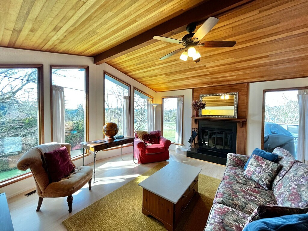 Sunny 3 bedroom, 2 bath, self contained upper unit provides space and amenities for a person to a small family. An idyllic setting on the Wing Point Green next to the clubhouse is within walking distance to Winslow, the Bainbridge Island ferry and Hawley Cove park. Amenities include hot tub, BBQ area on sunning deck and fireplace with sweeping views. Rent and enjoy the peace and tranquility of the island at its finest, removed from the bustle of the tourists and ferry traffic but close enough to indulge all the activities of the Winslow community.