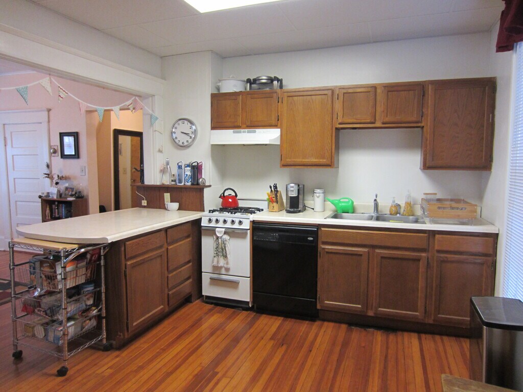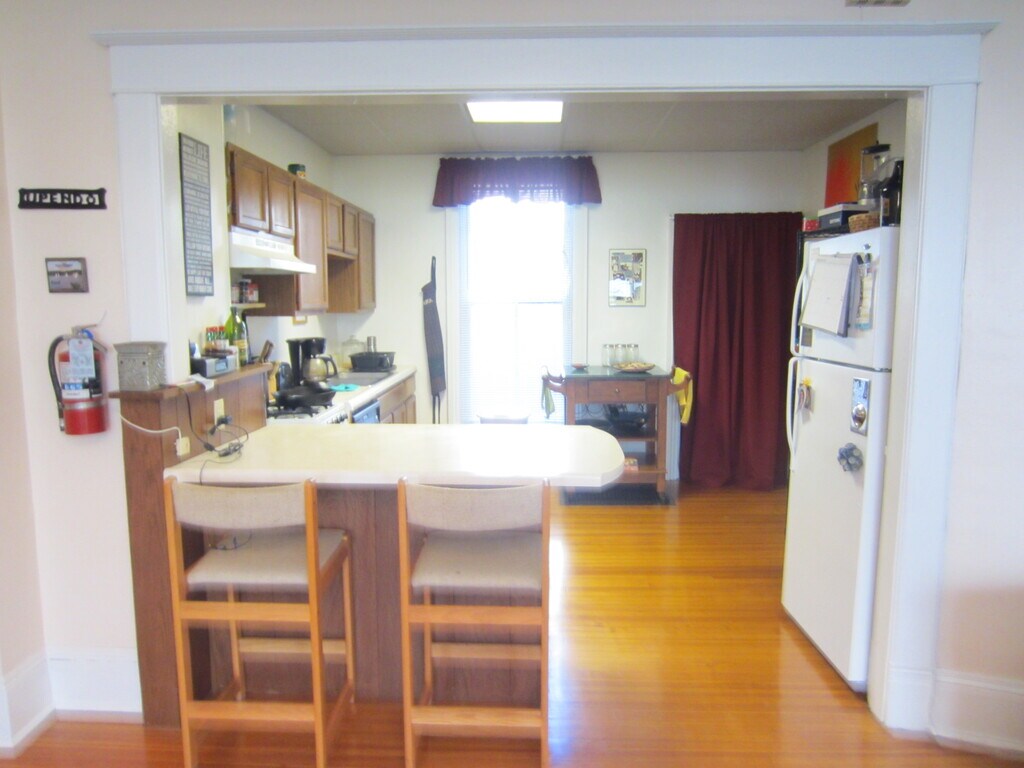 Este antiguo edificio fue construido a fines del siglo XVIII y más tarde renovada. Este cambio de siglo casa está ubicado en el viejo oeste de Lawrence. Este apartamento es de 2 habitaciones en la Primer piso, con pisos de madera originales. La entrada de apartamentos se abre a un vestíbulo. La sala de estar cuenta con ventanas mirador y hay espacio de almacenaje debajo de las escaleras en la sala de estar. Hay un desayunador, gabinetes de roble y espacio para una mesa con sillas en la cocina. Los electrodomésticos incluyen estufa, refrigerador, lavaplatos, y una lavadora secadora apilable apartamento. El baño está fuera de la cocina y cuenta con pisos de vinilo, un antiguo bañera con patas estilo garra bañera con una ducha y un tocador empotrado. La sala de estar cuenta con un ventilador de techo y aire acondicionado de ventana. La habitación más grande tiene un doble armario y puertas dobles. Es lo suficientemente grandes como para celebrar una cama King y muebles típicos de habitaciones. La segunda habitación está fuera de la sala de estar y es más pequeña. Cuenta con alfombras de pared a pared y el armario de puertas con espejo. Le damos la bienvenida a gatos que estén esterilizados/castrados con un depósito por mascota y el alquiler por mascota. Las referencias y depósitos de seguridad son obligatorios.