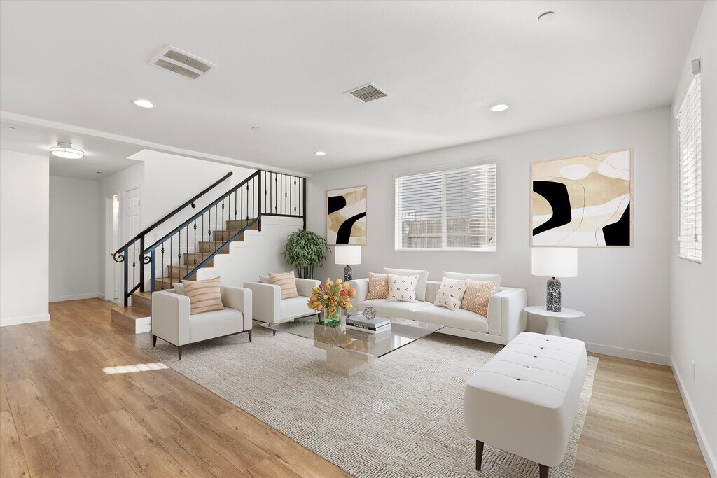 This contemporary four-bedroom, three-bathroom home sits within a newer-construction duplex, ideally located near Plaza La Alameda and Freedom Plaza shopping centers. The unit features in-home laundry hookups, a refrigerator, gas range, and two dedicated parking spaces, along with low-maintenance, drought-tolerant landscaping. The property is secured by a gated entrance for added peace of mind. Don’t miss your chance to make this beautiful home yours.