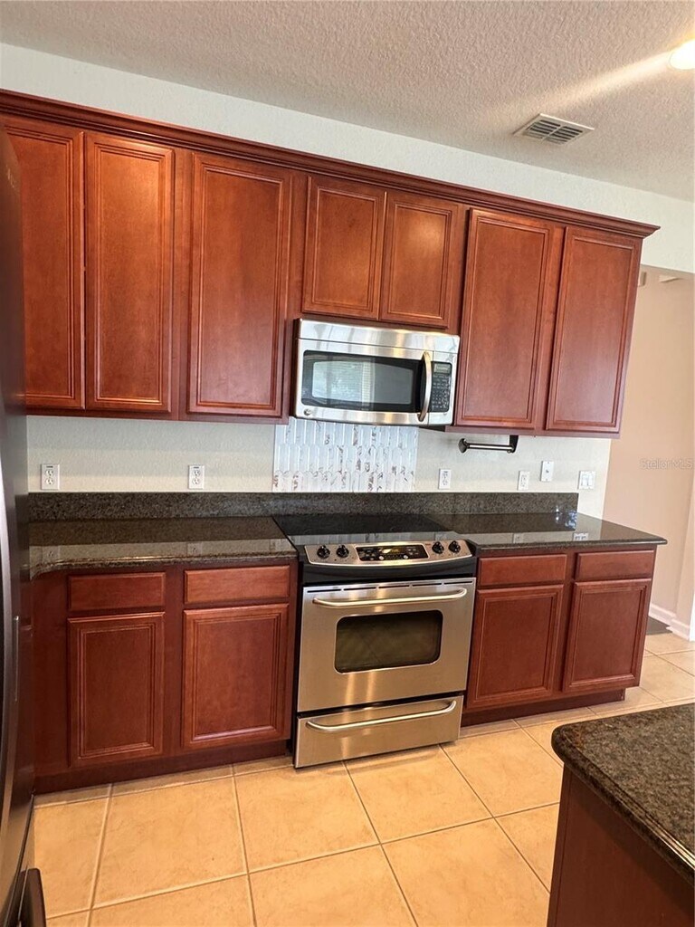 Welcome to this beautiful home in a quiet neighborhood close to schools, amenities, and Disney. First floor features a functional layout with living and dining areas. Front door opens to the formal living and dining room which could be repurposed to an office. The open layout continues into the kitchen featuring a big island and stainless steel appliances next to a breakfast nook filled with natural light. Kitchen leads to a big and open family room with a wrap around lanai. Upstairs are four bedrooms and 3 full bathrooms. Master bedroom includes a walk-in closet and a bathroom featuring dual vanities, soaking tub, and a separate shower. Second bedroom including a bathroom inside. Third/fourth bedrooms are Jack-and-Jill setup sharing a bathroom in between. The home comes with washer/dryer, gutters, and has fencing for privacy. The home is situated in a community with pool, playground, and tennis courts. The bike path is accessible right from the backyard for biking, jogging, taking a quiet stroll through the community, or watching the Disney fireworks. Conveniently located near top-rated schools, shopping, dining, highways, and world-class theme parks, this home offers comfort, space, location, and lifestyle in a desirable community.