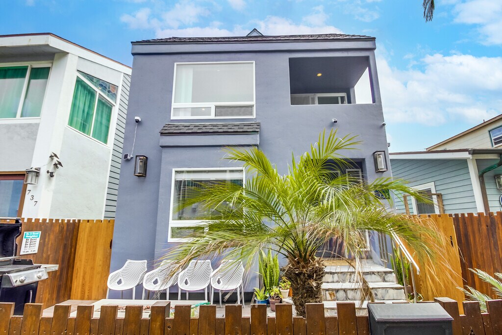 Everything you could want in a beachy vacation is at your fingertips! This home is tucked away between the Pacific Ocean and Mission Bay, the best of both worlds and less than a 1 minute walk to the beach! Home is on a quiet court but walking distance to restaurants, bars and shops! You'll be comfortable at night in the cozy 3 private bedrooms with air conditioning and newly updated bathrooms. Don't forget to enjoy sunset cocktails or dinner al fresco on one of the 3 balconies! Please note the house has central air conditioning controlled by a smart home thermostat and the 3rd floor has a separate portable ac unit to keep the room cool! PROPERTY LAYOUT: Level 1: Bedroom 1 (king) , full bath, garage, front patio with fire pit, seating & grill Level 2: Kitchen, living room, dining room, Bedroom 2 ( 2 queen), full bath, balcony, laundry Level 3: Bedroom 3 (1 queen & 1 twin), desk and 2 balconies Garage dimensions: Attached garage 7'6" H / 8'6" W / 17' D. Extended or oversized vehicles will not fit. THE LOCATION: Mission Beach is a laid-back neighborhood whose 2 miles of sandy shores attract surfers, sunbathers and volleyball players. Locals and visitors alike enjoy the paved walking and biking paths that curl around Mission Bay, a popular spot for water sports and family beach days. Casual cafes and eateries line Mission Boulevard, the single road that runs between the Pacific Ocean and Mission Bay. This unit is located in the northern part of Mission Beach and is just a few minutes walk to many restaurants and bars in both Mission Beach and Pacific Beach. Nearby Belmont Park also has tons of dining and entertainment options for all ages in addition to the world-famous Mission Beach boardwalk and Giant Dipper Roller Coaster! With this unit being just a block away from the ocean and bay, you’ll experience the best of the beach has to offer! Utilities dependent on lease length. Furnished home. Option 1 – Student Rental Sept 1 – May 24 $9,500/month 5 people max Option 2 – Monthly Rental 31-day minimum $8,500/month (lowest rate) June–Sept: $14,000/month