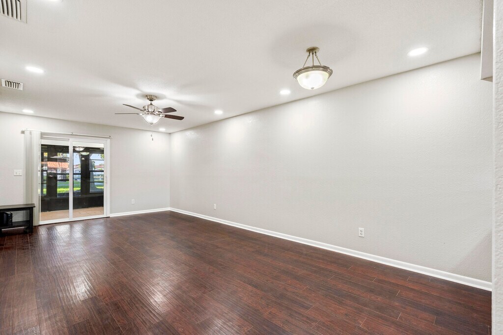 **PLEASE NOTE: Brand new luxury vinyl plank flooring will be installed throughout the entire condo prior to the start of the lease, and the kitchen cabinets and bathroom vanities will be updated with a classic white finish. Rent INCLUDES basic cable, water and trash. Please email owner for a link to a 3D Virtual Tour. One or more photos has been virtually staged.** This beautifully fully remodeled 2 bedroom, 2 bathroom villa is just now becoming available again after several years in the highly sought after community of Rosetree Village. This spacious villa features newer stainless steel appliances, satin nickel finished fixtures, granite countertops, and all wooden cabinetry in your kitchen and bathrooms. There is plenty of storage space for all your needs with two walk-in closets, linen and laundry closets, as well as two storage closets. This homes also includes a laundry closet equipped with your own washer and dryer. Each and every room in the home has just been upgraded with new energy efficient recessed LED light fixtures and bulbs. In addition to the large square footage listed, this home also features an enclosed Florida bonus room that could be used a multitude of ways, such as an additional sitting area, entertaining space, or home office, and is accessible from both the living room and master bedroom. Enjoy your morning coffee or evening nightcap overlooking one of the communities grassy common areas from your large screen enclosed patio in the back of the home. Your patio's back door leads you across that common area straight to the community pool and clubhouse. Rosetree Village is a privately owned community with a pet friendly policy, and features two community pools, a clubhouse available for private events, a playground, and a basketball court. Located in close proximity to major transportation and dining options. Contact the property owner directly for the rental guidelines and a lease application. Rent includes basic cable, water and trash. A $50 application fee will be required for background checks. An additional $250 deposit will be required for each pet.