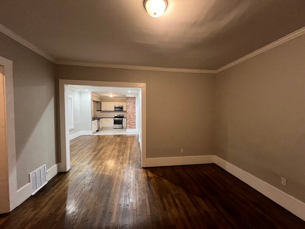 Introducing the beautiful residence at 7426 DUNEDIN ST, DETROIT MI where modern amenities meet classic charm. This apartment includes 2 bedrooms, 1 full bathroom, a spacious living room, dining room, and kitchen with stainless steel appliances and has a front and back porch. Located in the beautiful La Salle Gardens, one of the most sought-after neighborhoods in Detroit, only minutes from Midtown and less than 10 minutes from Detroit downtown. Also, in walking distance of one of the most sought after coffee shops in Detroit, The Congregation. This is an extremely fast growing neighborhood. Step inside to discover a spacious living room with natural light streaming through ample windows, highlighting the rich wood flooring that runs throughout the home. The open flow into the dining area offers a generous space for shared meals and gatherings, with the well-positioned windows providing a beautiful view of the surrounding neighborhood. The bathroom is a sanctuary of style, featuring tile flooring that meets the day's demands with ease. With sleek fixtures and clean lines, this space offers a spa-like atmosphere. Water is included in the rent. Washer and Dryer are included